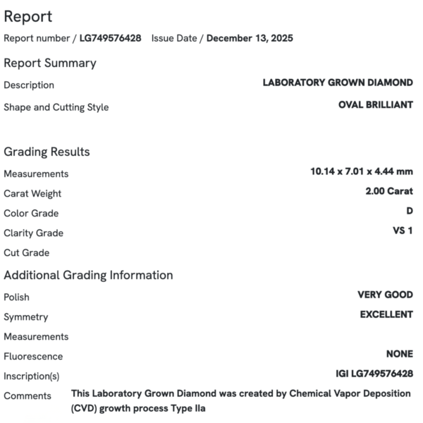 2.00 Carat. D Colour. VS1 Clarity. Oval Cut