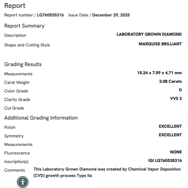 3.08 Carat. D Colour. VS2+ Clarity. Round Brilliant Cut